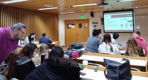 Alumnos de la Universidad de Boloña (Italia) y Alumnos de UADE de la Lic. en Dirección de Negocios Globales realizando su trabajo anual en equipos interculturales.