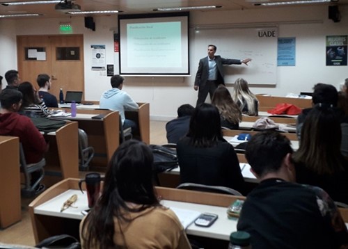 Los alumnos de segundo año de Dirección de Negocios Globales recibieron Jorge Rodríguez, secretario de Posgrado en UADE y participaron de una charla sobre Tributación internacional de Empresas y Convenios para evitar la doble imposición.