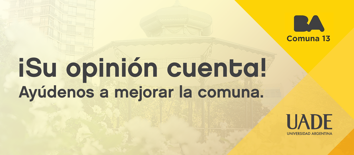 El Instituto de Ciencias Sociales y Disciplinas Proyectuales (INSOD) de UADE realiza una encuesta con el fin de recabar información sobre la experiencia cotidiana de los vecinos y conocer prioridades, problemas cotidianos y oportunidades de mejora en el barrio. Es anónima y lleva aproximadamente 10 minutos realizarla. |