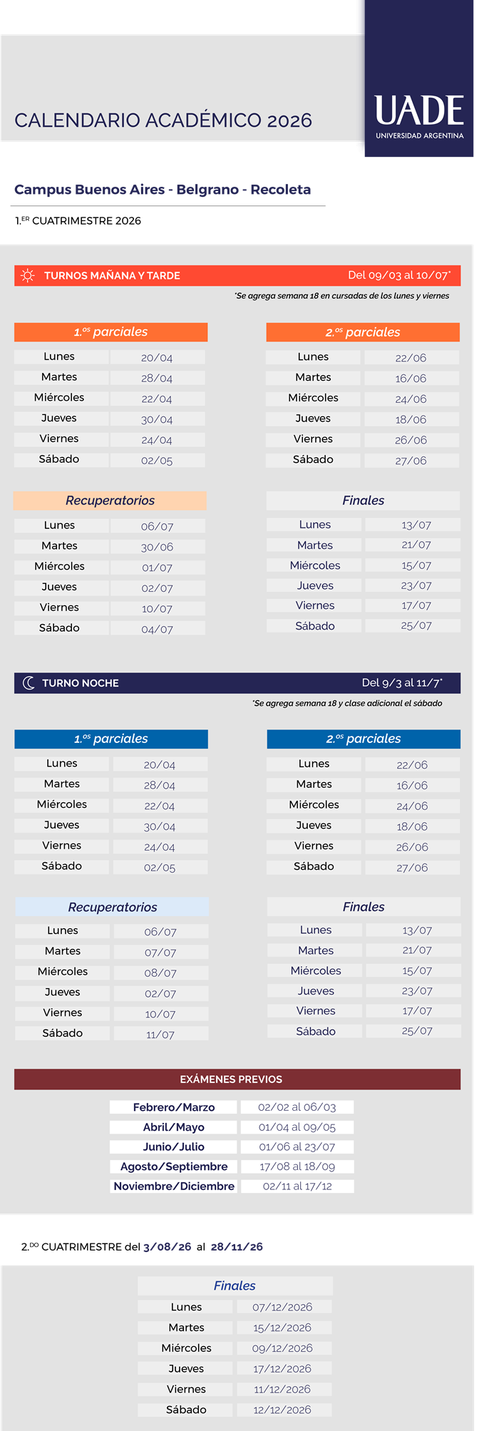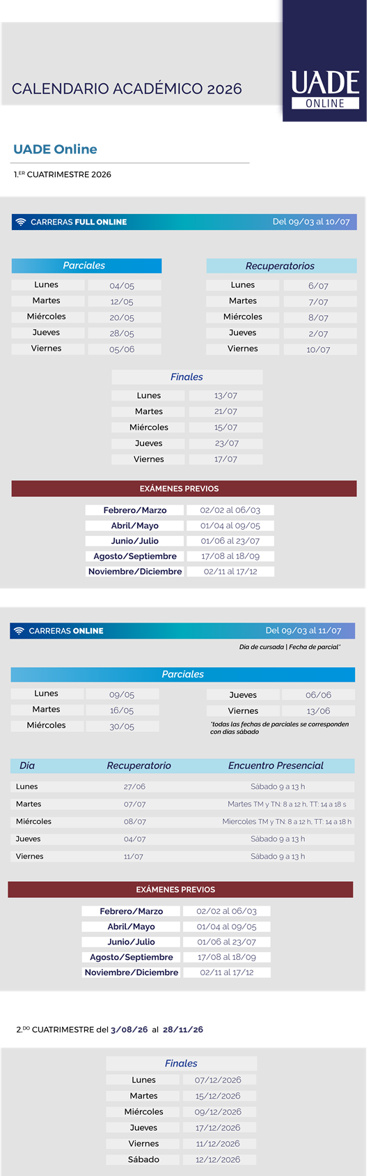 Calendario académico 2026