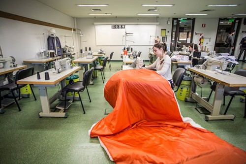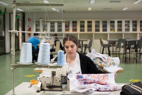 En el Laboratorio de Confección se trabaja con todo lo relacionado al armado industrial de prendas. Está equipado con máquinas de coser de diferentes tipos y usos (recta, ametralladora, overlock, collareta, doble y triple arrastre, entre otras), armario para el guardado de insumos, bordadora industrial de 16 colores, mesa y herramientas de corte, pizarrones y proyectores para el dictado de clases. El Laboratorio de Estampado cuenta con shablones, mesa de insolación, mesas de estampado, secadoras, impresora adaptada con tinta de sublimación, planchas industriales para sublimación, bachas para limpieza de shablones, cuarto oscuro con luces de rebelado, insumos y armarios para su guardado. Contamos con maniquíes, planchas, máquinas para colocar avisos de uso compartido por los alumnos.