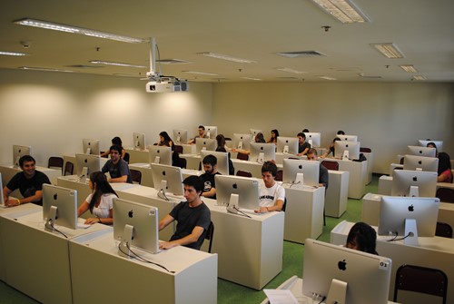 Diez aulas de Informática equipadas con 300 terminales en total, que se utilizan para realizar prácticas en el dictado de asignaturas de todas las carreras de la Universidad.
