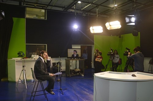 Los alumnos de la carrera realizan prácticas frente a cámara. El estudio de está preparado con equipos profesionales, cámaras, luces y dimensiones. Además, hacen uso del Control para que puedan conocer los distintos puestos y aprendan cómo operan todos los sectores.