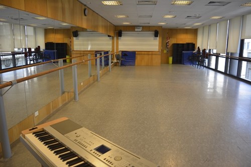 Con un espacio total de 500m2, un amplio escenario de 80 m2, y 190 butacas, el espacio permite que los alumnos, en un ámbito profesional, puedan desarrollar, clases, realizar ensayos y presentar obras propias o de terceros.